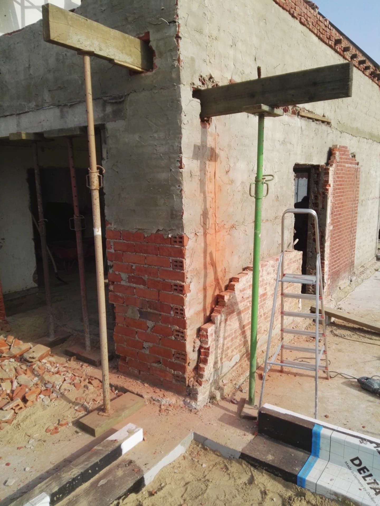 Na herverkaveling van het perceel werd de bestaande woning uit de jaren 80 gesloopt om ruimte te maken voor 2 gespiegelde woningen in eigentijdse stijl met pastorie accenten. De bestaande woning werd eerst afgebouwd tot op het niveau van de bestaande kelder alvorens de ruwbouw werken van start gingen.