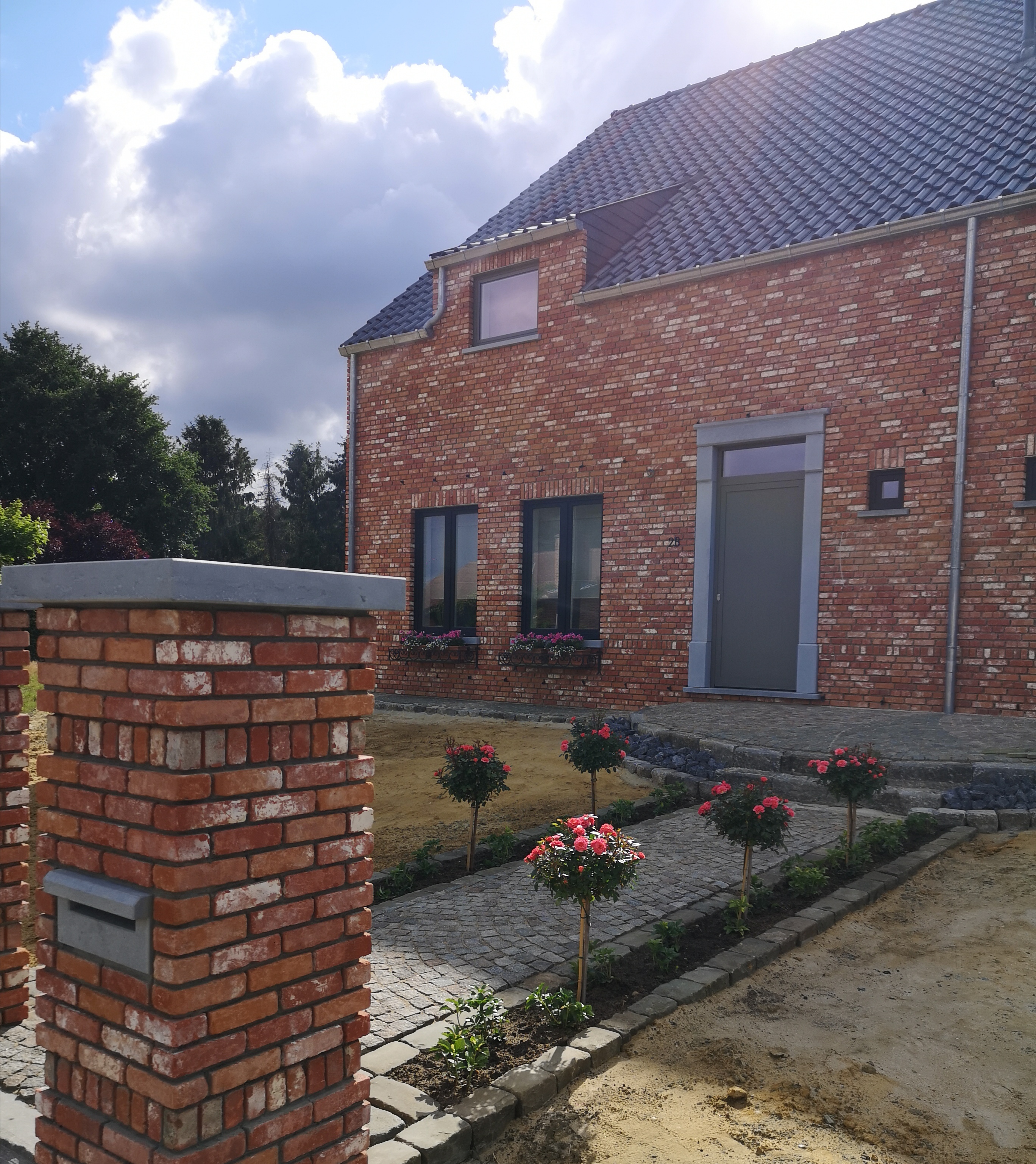 Pastorie elementen met Beerse-look bakstenen en Arduinen deuromlijstingen.